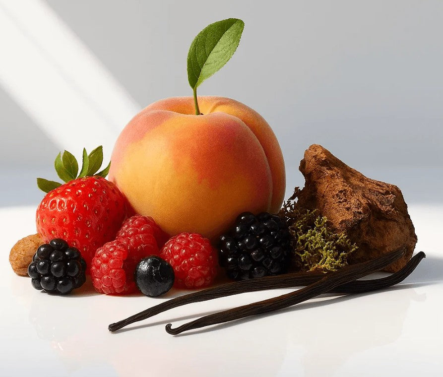 🔸 Notes de tête : Un départ fruité et gourmand avec des accords de pêche, caramel, fraise et framboise, pour une douceur vibrante.